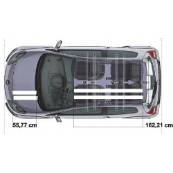 La première bande se place à 29cm du bord de capot avant et à et 10cm du bord du toit (mesure prise au milieu)